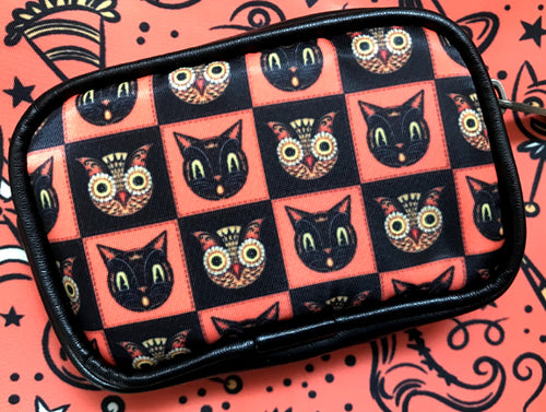 Johanna Parker Cats & Candy Corn Pouch or Cosmetic Bag